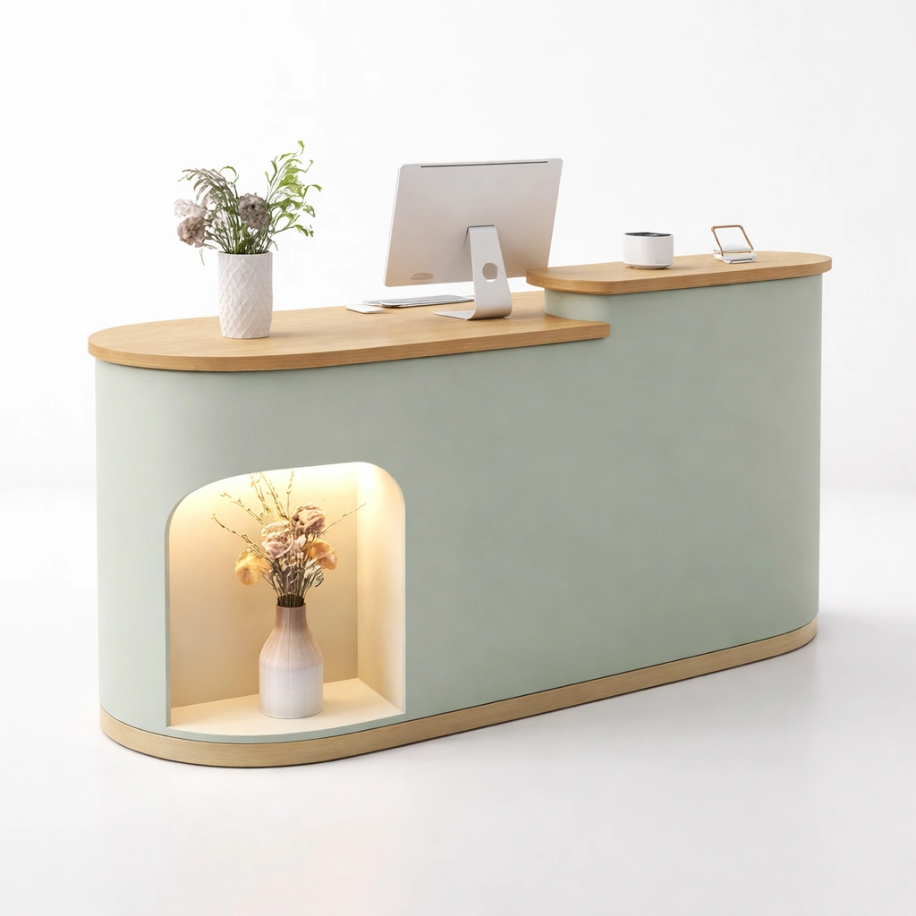 Wandhängender Waschtisch (Hauptschrank): Geschwungenes Design mit weichen Linien, platzsparend und optisch leicht.